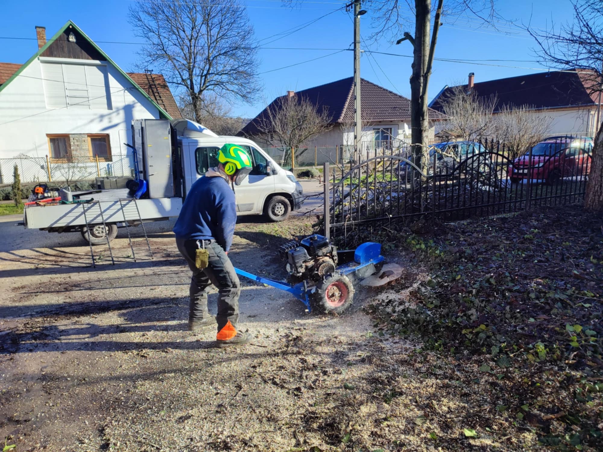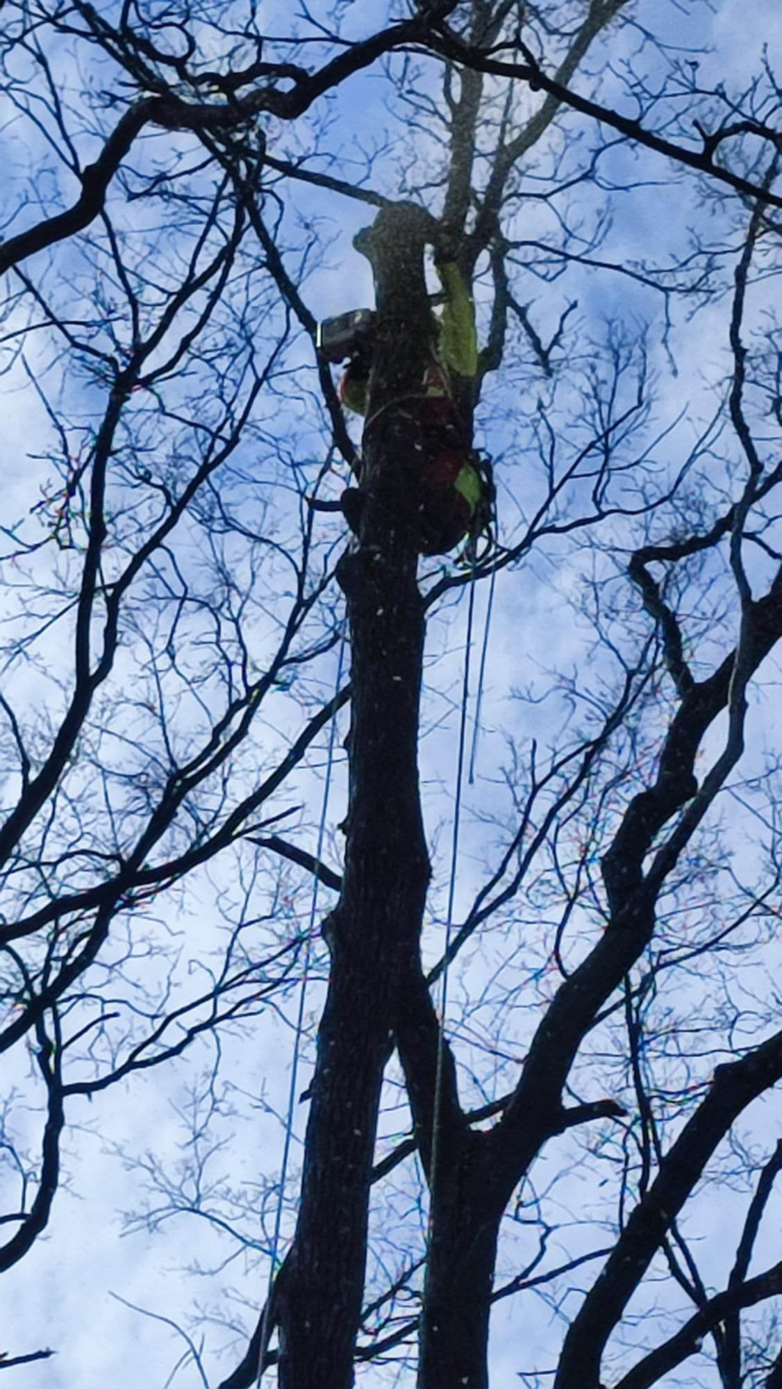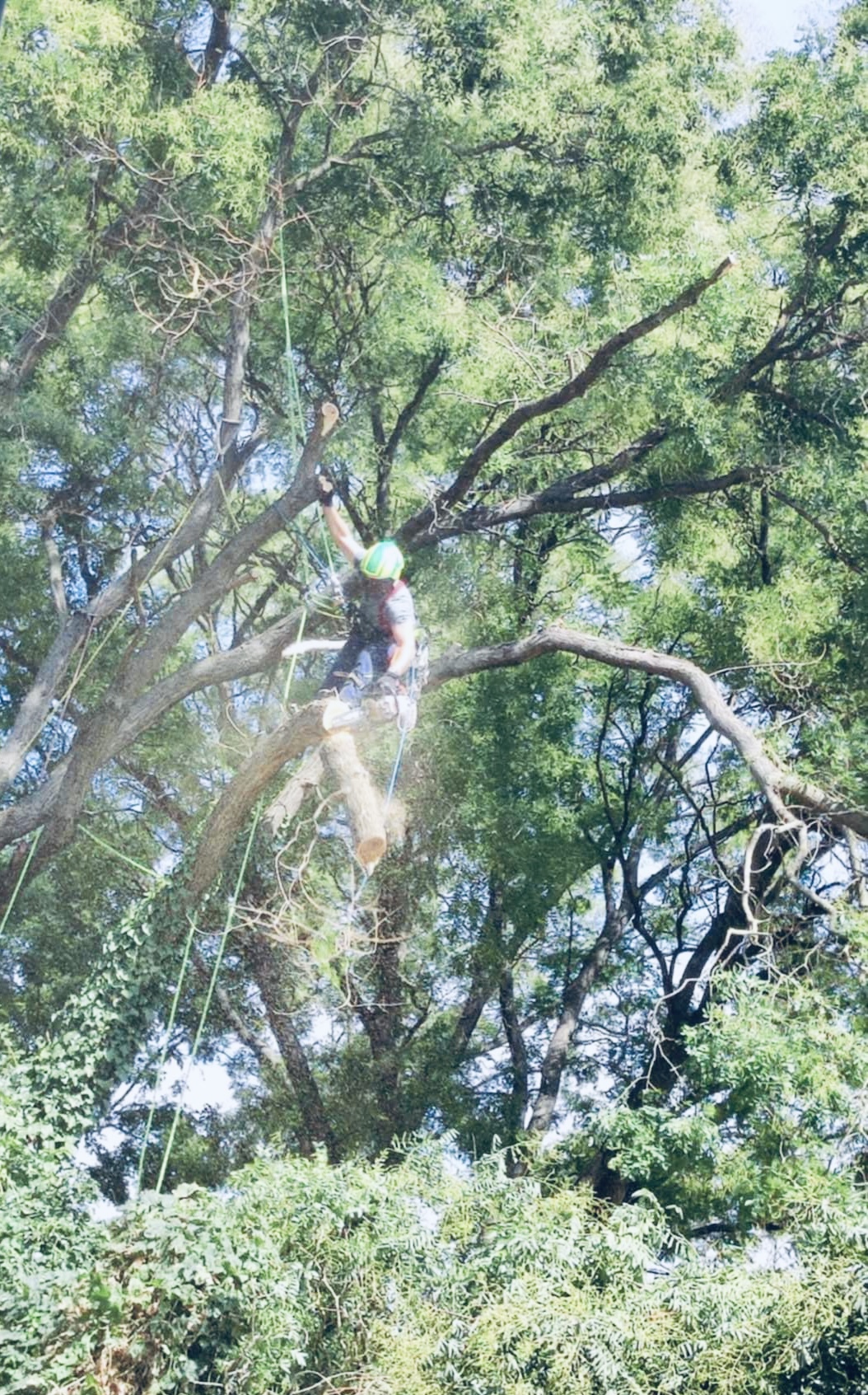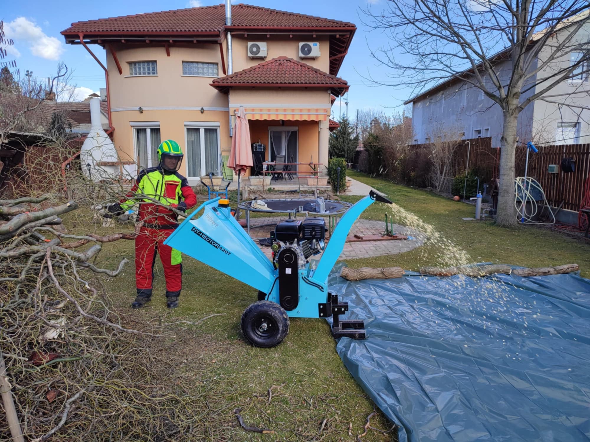 Favaágás alpintechnikával, veszélyes fák kivágása, gallyazása.